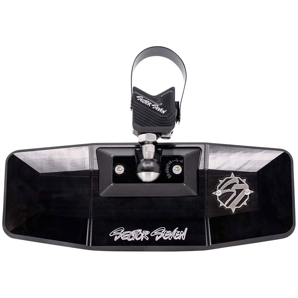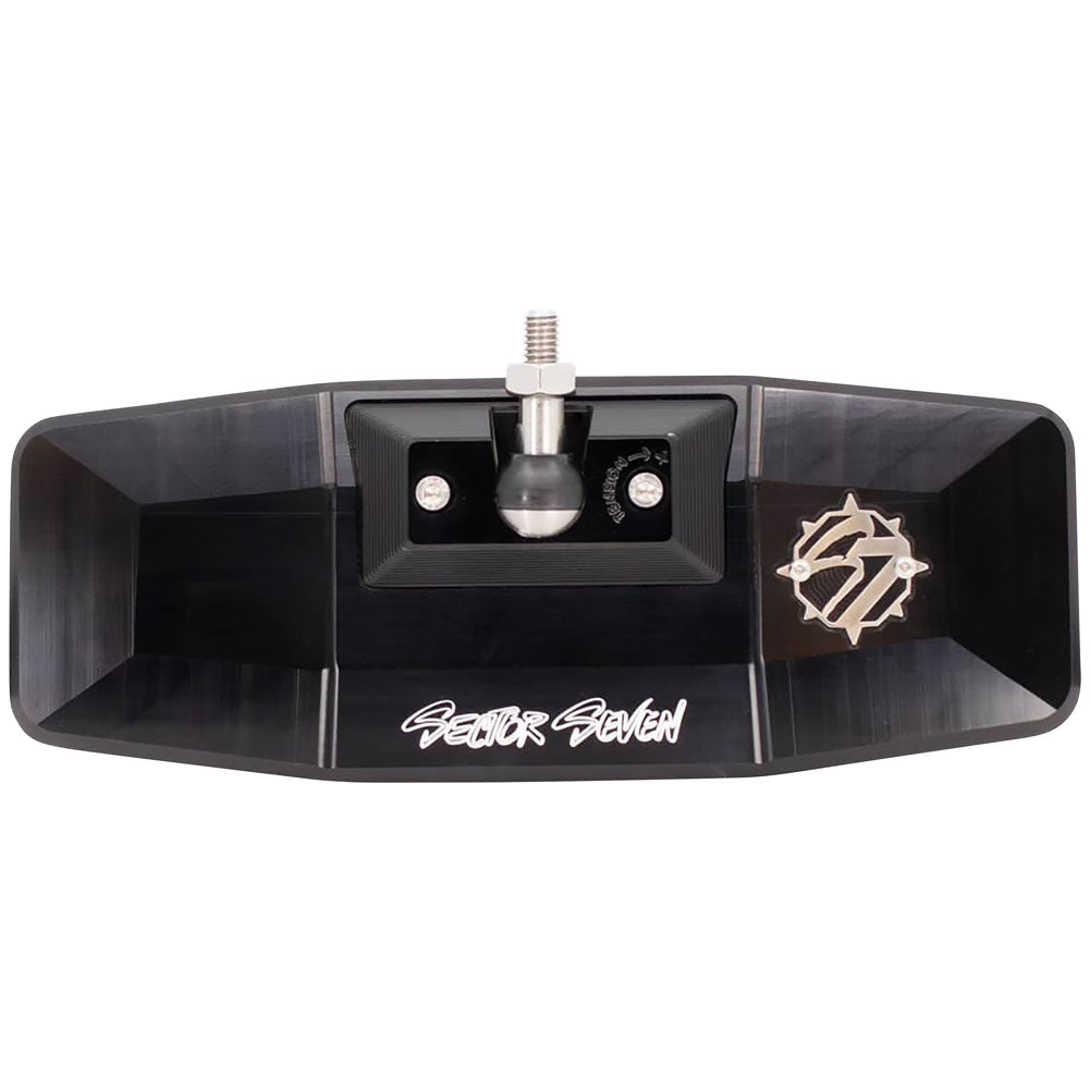 Lets take things up a notch with the Sector Seven Ridgeline Billet Rearview Mirror! In typical Sector Seven fashion, they want you to see more, and have an machined quality billet product that you can trust for years to come. The Ridgeline Billet Rearview Mirror features a large 10" x 4" convex glass mirror offering 90 degrees of viewing area; for clear visibility behind and to the sides while shredding the dunes or trails.