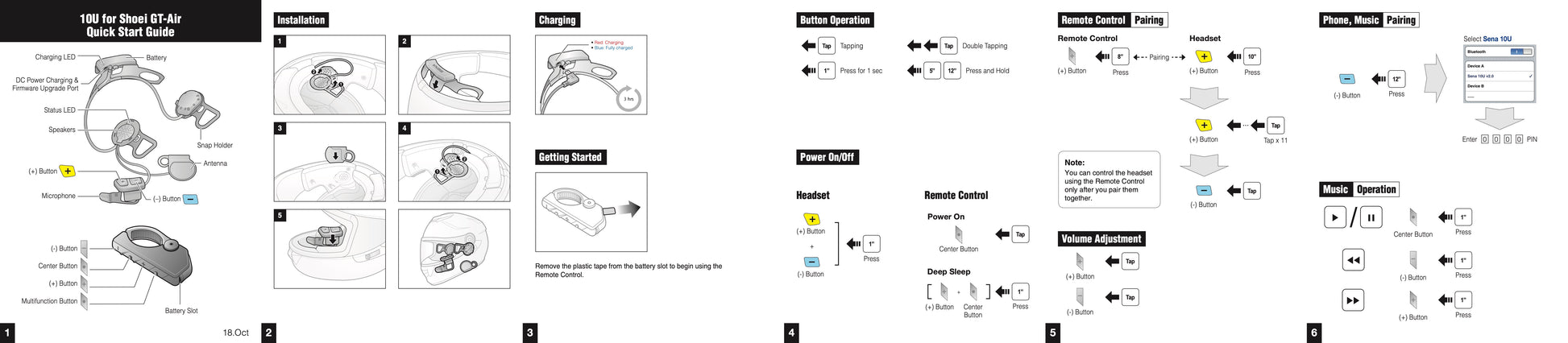 Sena 10U Bluetooth Communication System Shoei Helmets