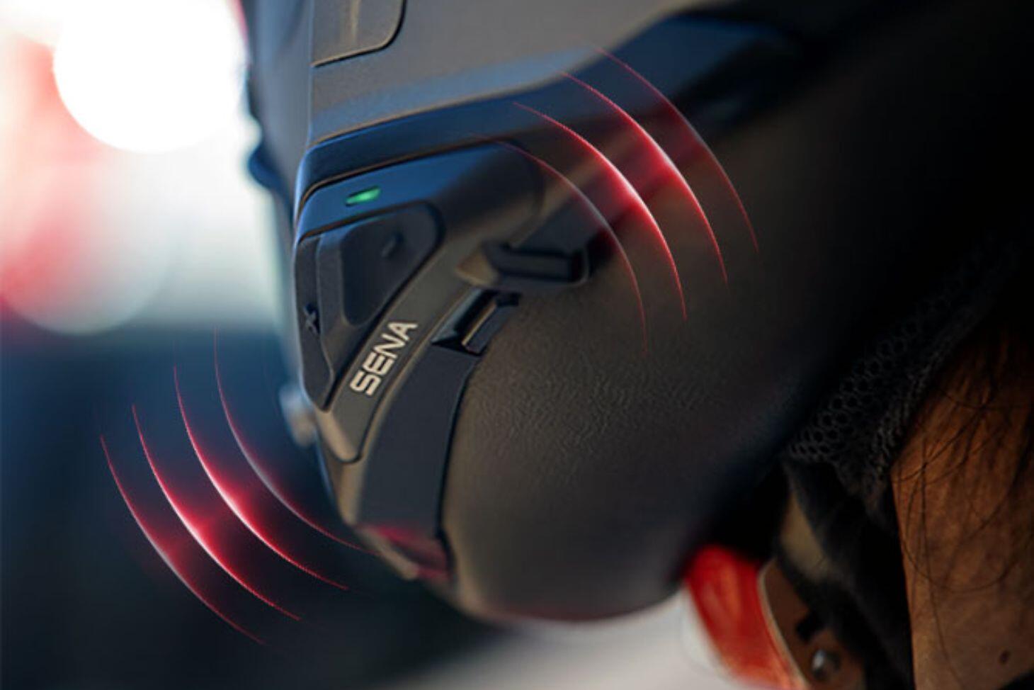 The Sena SRL-MESH provides seamless communication with Mesh and Bluetooth intercom, voice control, and Harman Kardon sound.