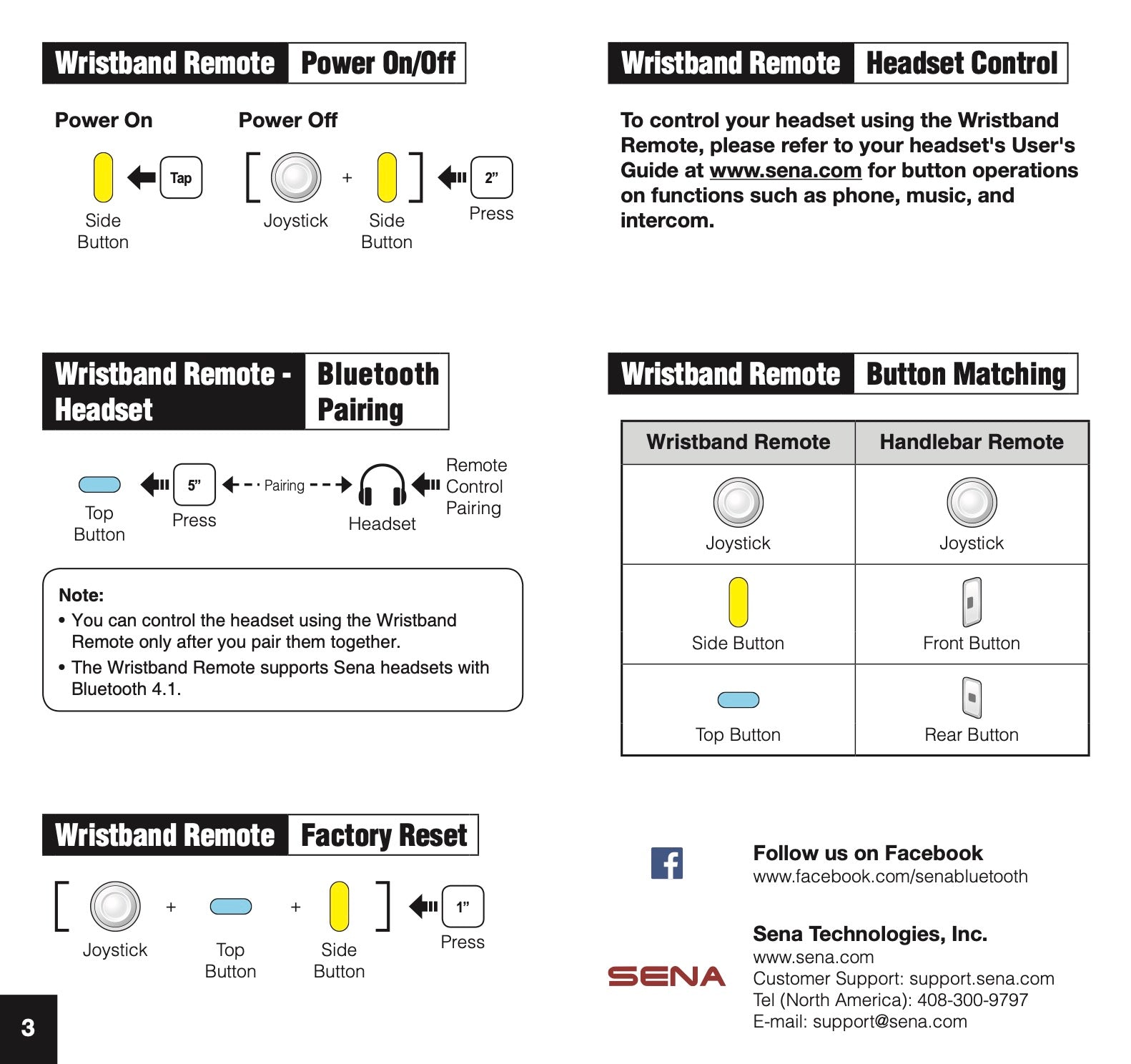 The Sena Wristband Remote works with Bluetooth® Smart Ready-enabled gear, which is part of the Bluetooth® 4.1 standard.