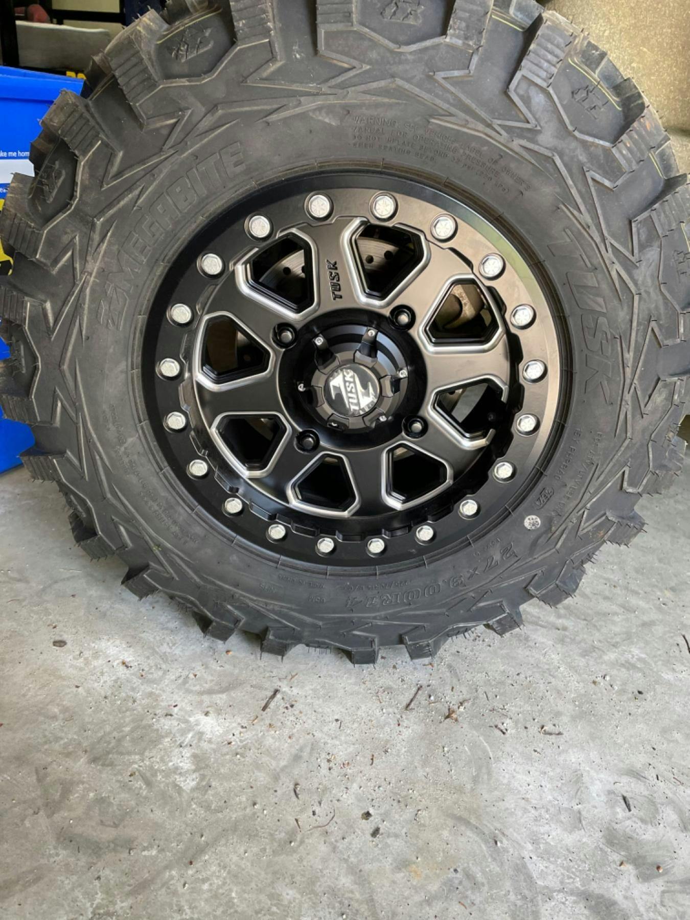 Very happy with the wheel and tire package. I went with 14x7 Tusk Uinta wheels paired with Tusk megabite in 27x9-14 on all 4 corners. Wheels look great and are a great price for being a beadlock. Only reason I didn't give 5 stars is because FedEx scratched up the beadlock ring on 2 of the wheels during shipping but I know I'll end up adding more scratches from the trails. Make sure you order the MSA Spline lug nuts and key with these wheels because a normal size socket won't fit for the stock lugs without damaging the finish.