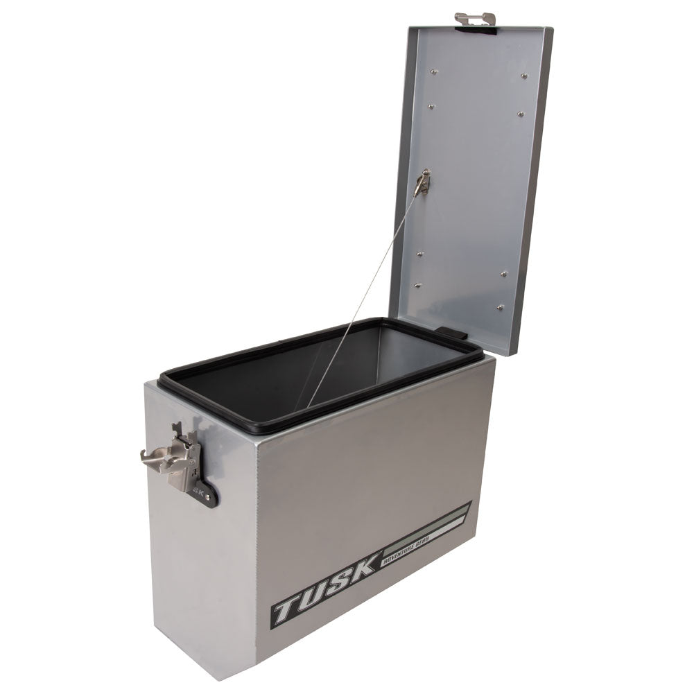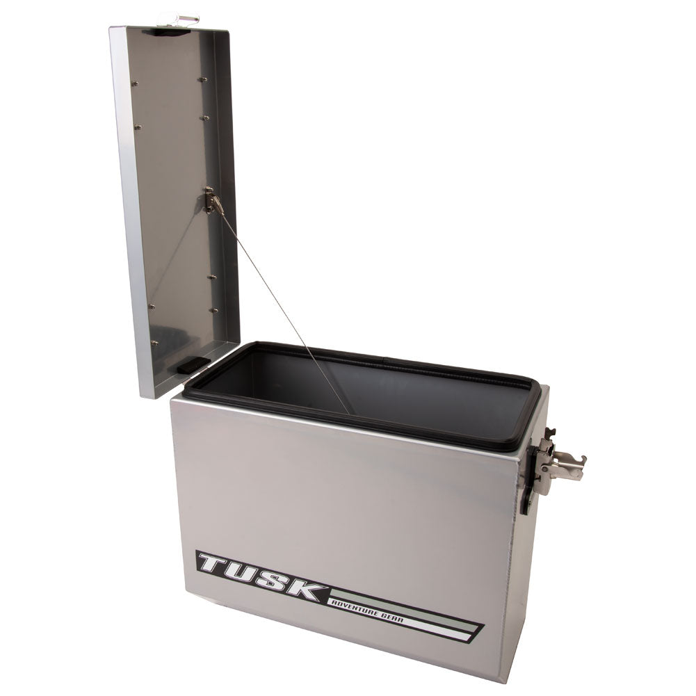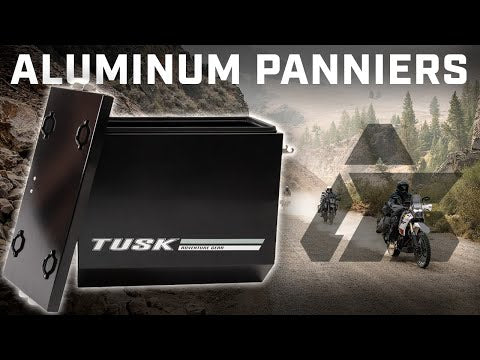 The Tusk Aluminum Pannier Boxes are designed and manufactured to handle the most extreme adventure motorcycling. These panniers are loaded with features to offer an unbeatable value! These panniers are made from durable yet lightweight aluminum with a tough silver or black powder-coated finish. Not only do they look great, but they prevent the items you store from getting the black residue produced when rubbed against unfinished aluminum. Unique design that eliminates seams on the back two vertical edges (weak spots on other panniers), and all existing welded seams are reinforced with internal stitch welds. For security and convenience, the boxes come complete with 4 (2 on each box) matched locks and keys already assembled on the latches! A rubber gasket at the top of the box ensures the lid is tight and waterproof. Each lid comes complete with 4 bolt-on footman loops to secure additional items. Each Large box is 37 Liters and measures 15 ½" tall, 9 ¼" deep, and 18" wide. The Medium boxes are 27 Liters each and measure 14 ¼” tall, 7 ½” deep, and 16 ¼” wide. This is a complete kit with all the mounting hardware to outfit your bike for the next adventure.