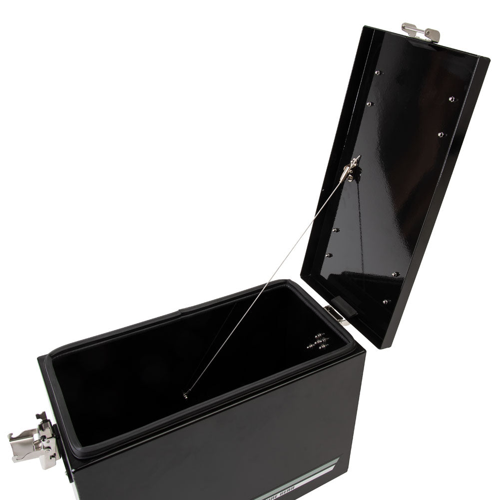 - Each Large Box is 37 Liters and measures 15 ½" tall, 9 ¼ deep, and 18" wide. A pair of boxes gives you 74 Liters of storage. Large box opening measures 16 ½" Wide x 7 ¾" Deep.