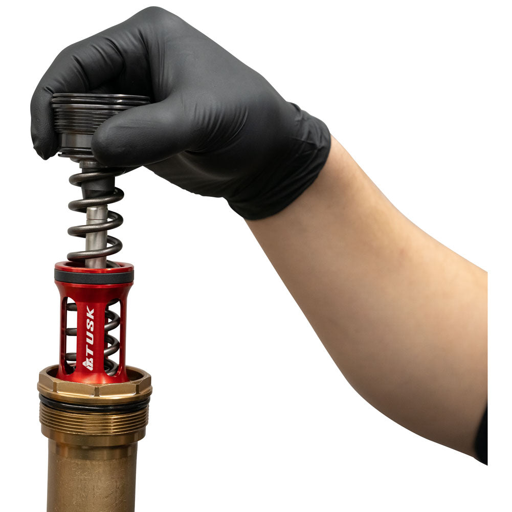 As great as the KYB SSS/AOS are in being some of the best forks on the market, the one flaw they hold are the plastic free pistons that come stock on them. Even with the updated bleed hole on later model forks, there is still a concern for the free pistons to become brittle and damaged over time given the material they are made of. With the Tusk Fork Free Pistons, that concern is a thing of the past with its billet aluminum construction for extended durability and windowed design that helps in creating a plusher initial feeling in the fork. If you’re looking to upgrade your current set up, doing some preventive maintenance by replacing your OE free pistons, or you discover your OE free pistons have been damaged, pick up the Tusk KYB Fork Free Pistons!