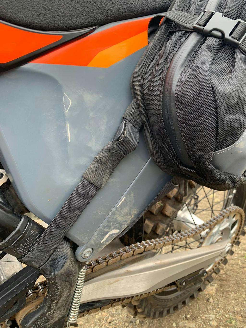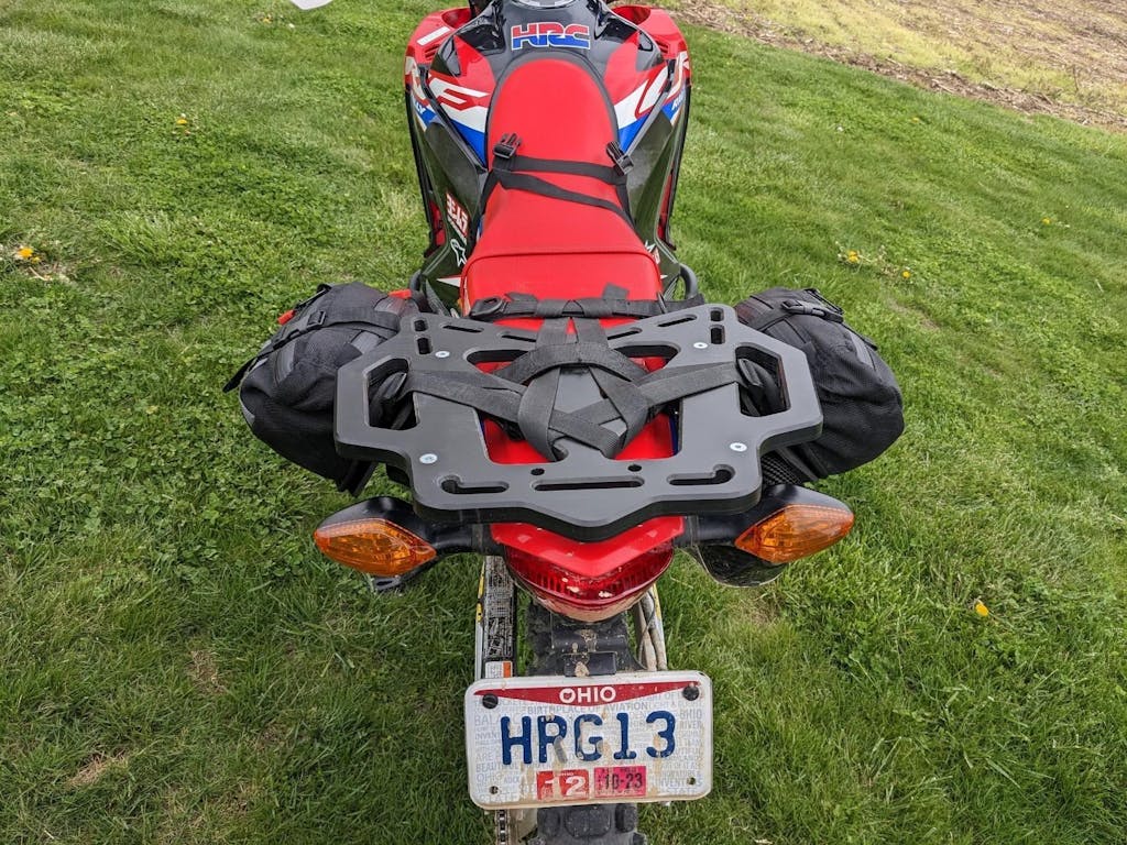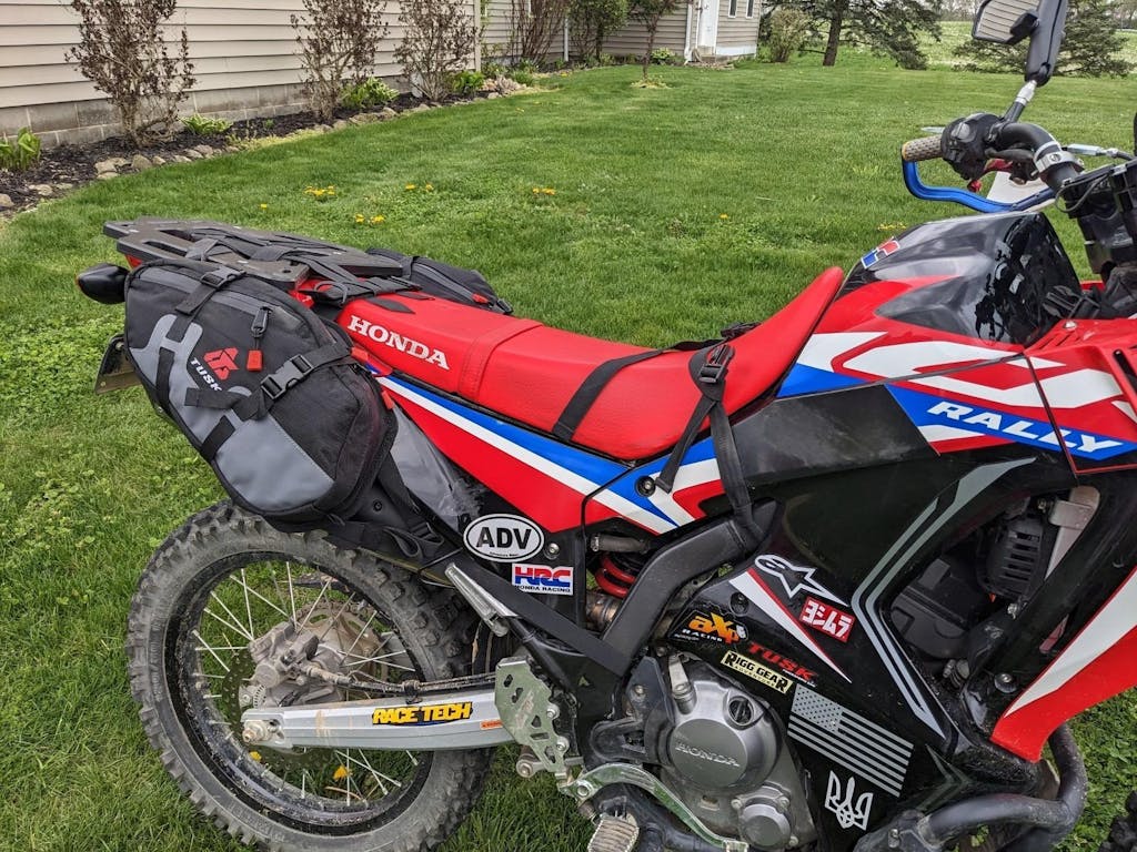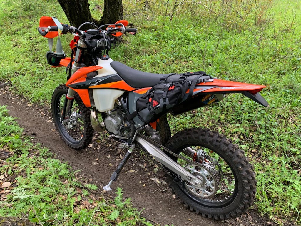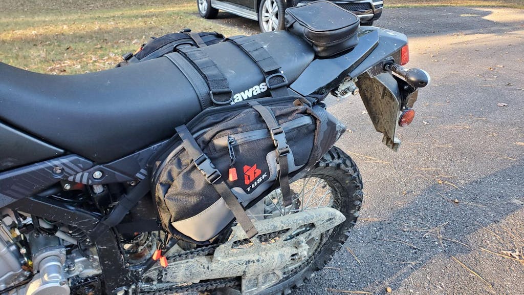Pleasantly surprised with these Tusk bags. Great value! They are low profile and barely noticeable on the trail. The provided rear fender hook strap didn't work at all so ended up using two Kriega mounting loops with a couple Luorng G-hook buckles for a super secure tie down point. Also added some cordura webbing sleeves over the straps that wrap around the frame. Also, relocated the buckles closer to the bags so they don't snag on the boots. Overall very happy with purchase. Highly recommend.