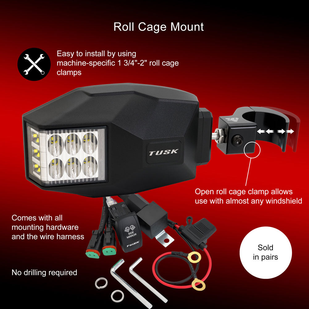 - Comes with LED mirrors, roll cage clamps and wire harness for a complete install.