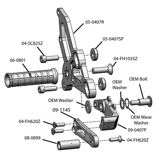 OEM Parts: Woodcraft rearsets assume you are replacing OEM rearsets. This kit utilizes some OEM components - see exploded drawings for details.