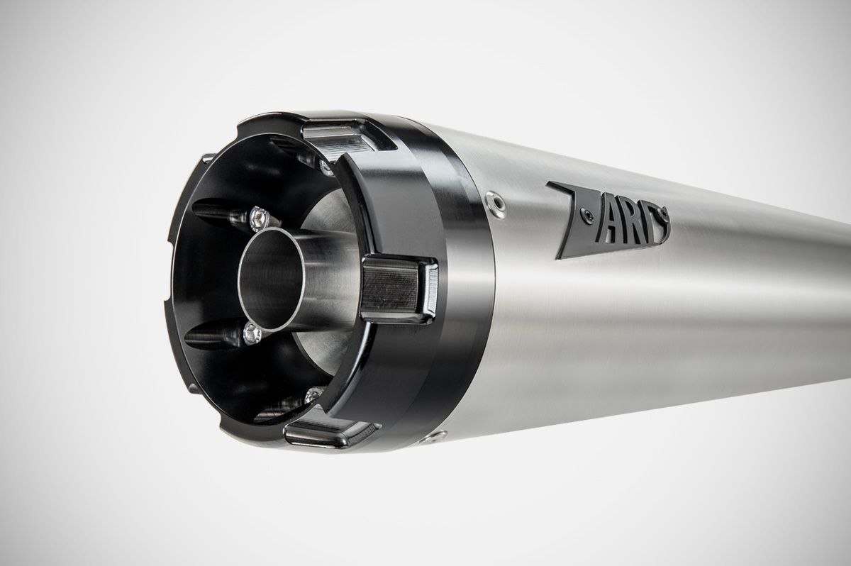 Designed by the Centro Stile Zard and handcrafted in Italy from AISI 304 stainless steel, this complete kit includes headers, a short cone silencer, and a black anodized billet aluminium end cap. Available in satin, polished, or Cerakote® black finishes, with the Zard steel badge.
